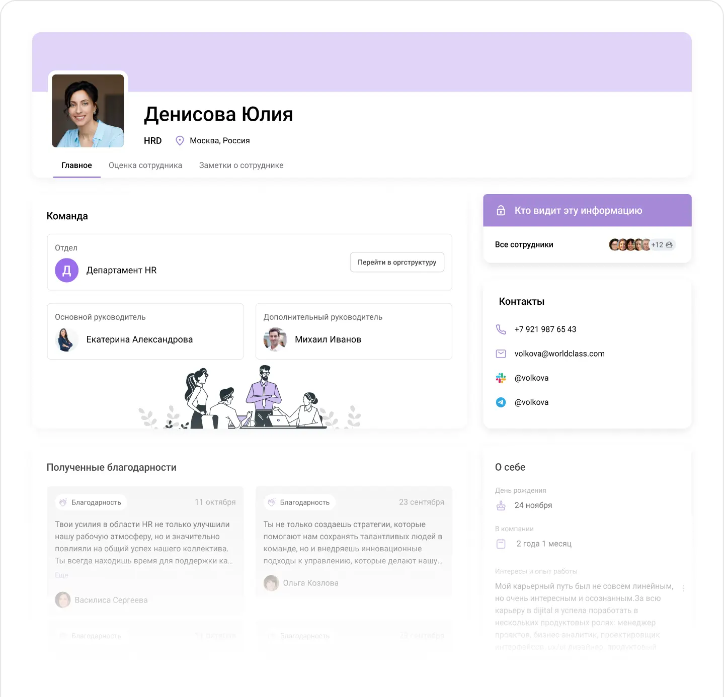 Выбирайте, какая информация о сотруднике будет публичной, а какую увидит только руководитель.