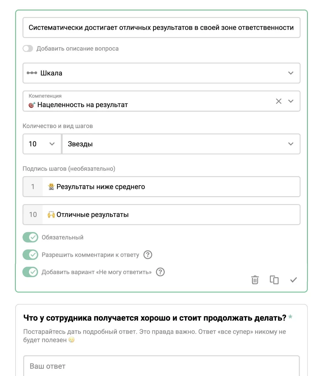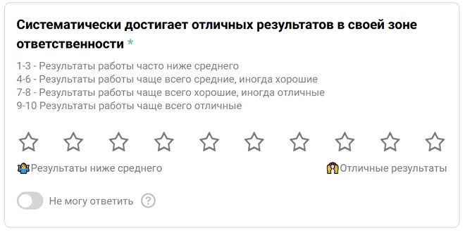 Например, в Jinn для оценки каждой компетенции можно создать несколько вопросов,